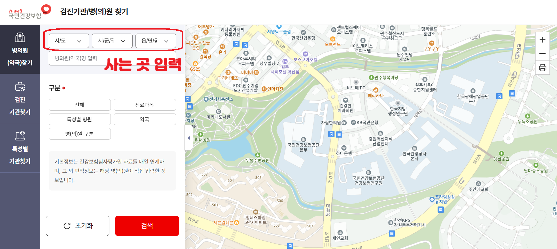 집에서 가까운 곳에 위치하고 있는 검진기관 / 병(의)원을 빠르게 찾아보세요!