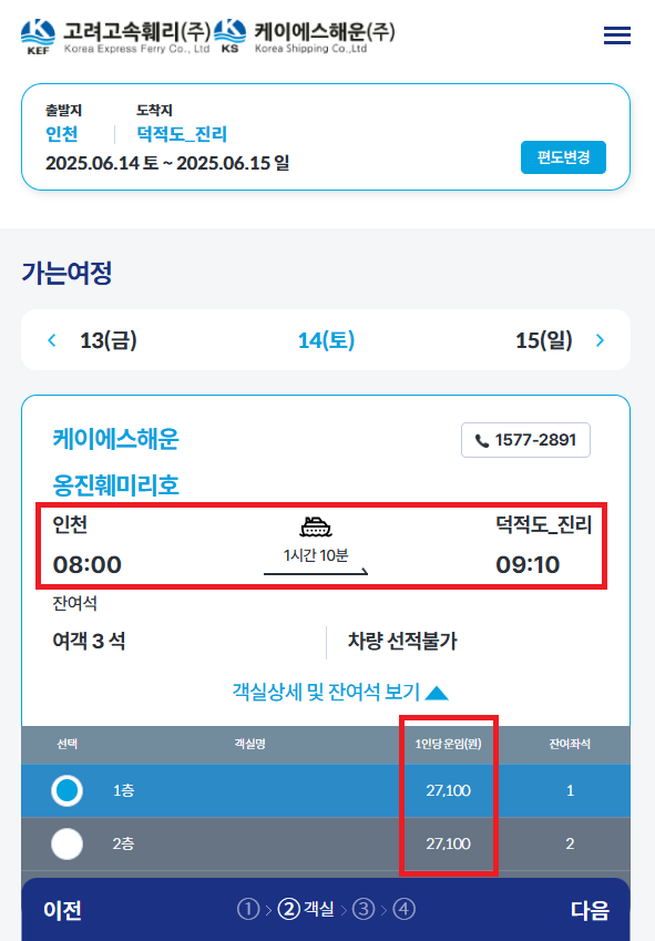 인천 덕적도 배편 요금은 선박 종류, 이용 요일, 할인 여부에 따라 차이가 있으며, 대중적으로 이용되는 쾌속선(코리아나호, 코리아스타호)과 차량 선적이 가능한 차도선(코리아익스프레스카훼리)으로 나뉩니다.