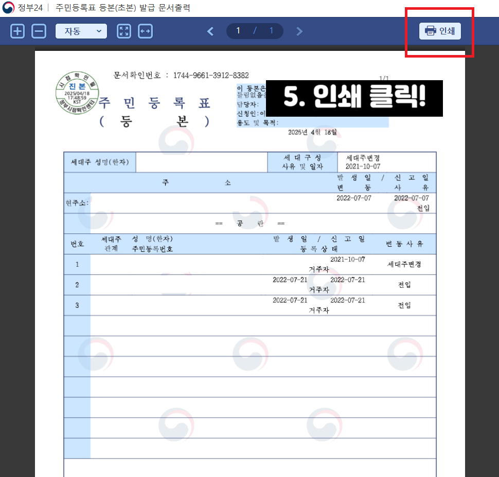 ❓주민등록등본 인터넷 발급 이력은 남나요?