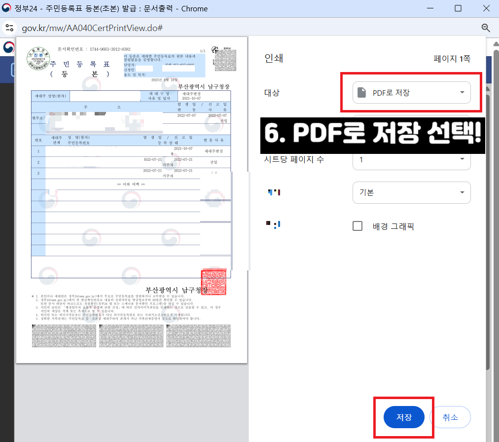 주민등록등본 인터넷 발급 서류를 PDF로 저장하고 싶으시다면, 아래 방법을 보고 차근차근 따라하세요. 아주 간단합니다!