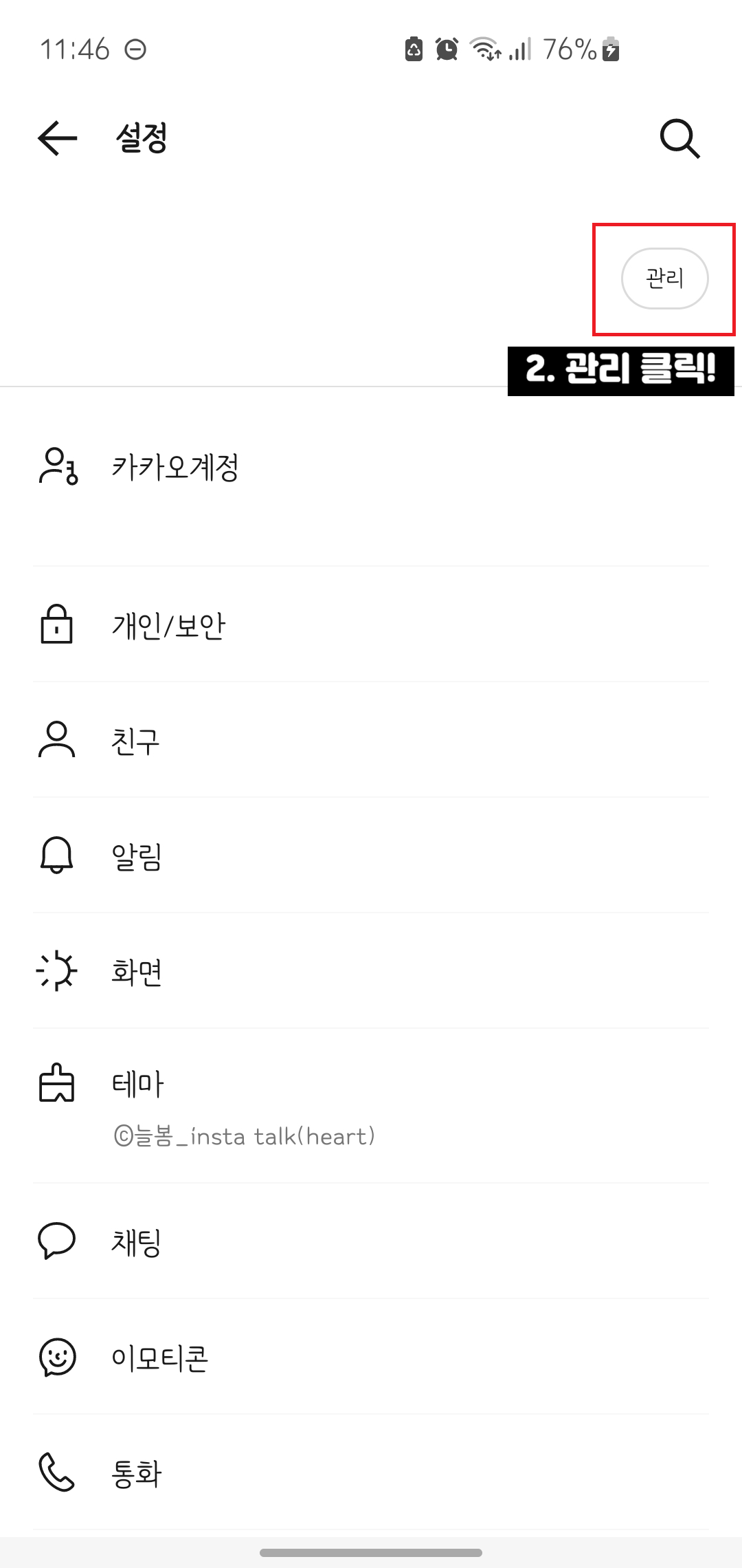 2) 다시 한 번, 오른 쪽 상단에 있는 '관리' 버튼을 클릭하세요.