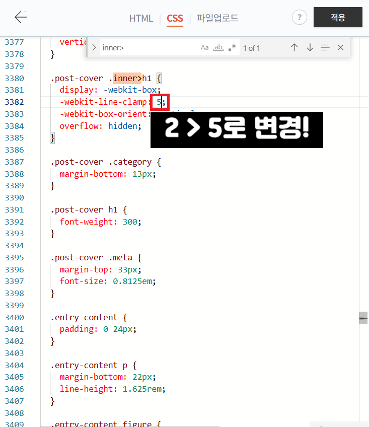 제목이 2줄만 보이던 것을 5줄까지 써도 보이도록 설정하는 거예요!