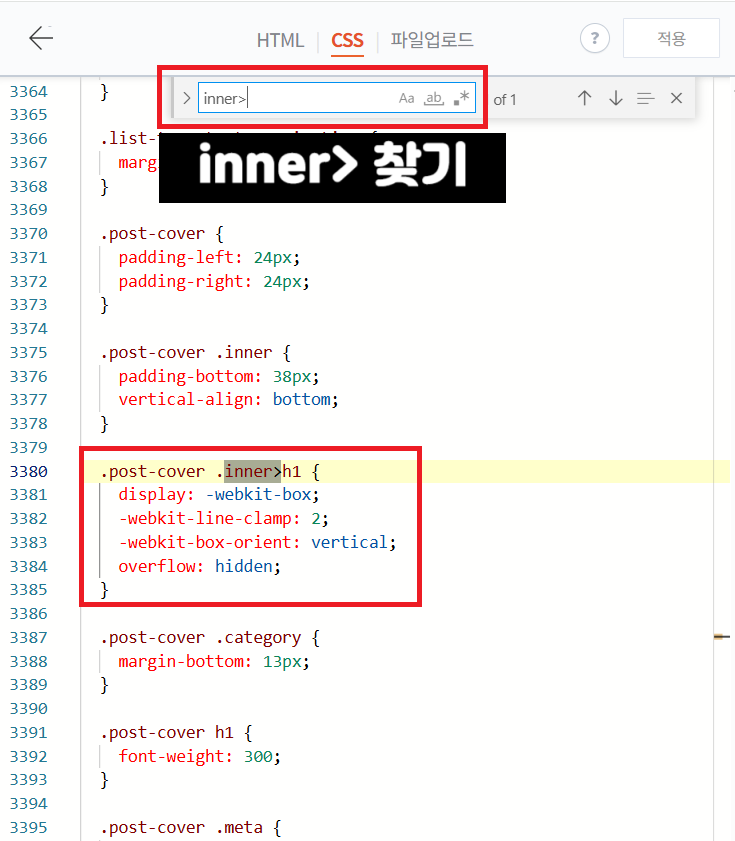 3. Ctrl+F 한번 더 눌러서 'inner>' 찾기
