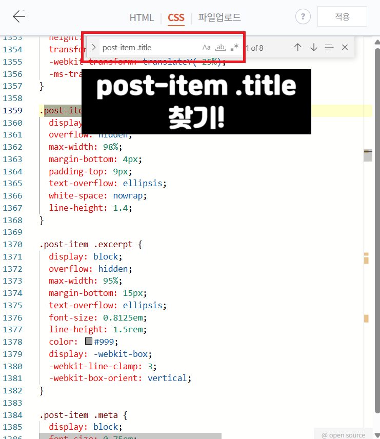 1. 티스토리 스킨편집 > HTML 편집 > CSS > Ctrl+F > 'post-item .title' 찾기